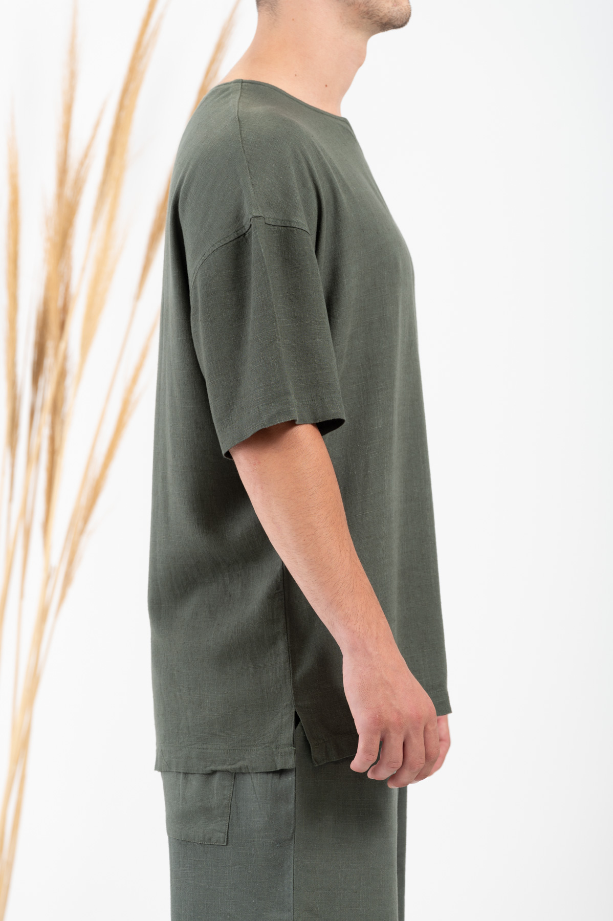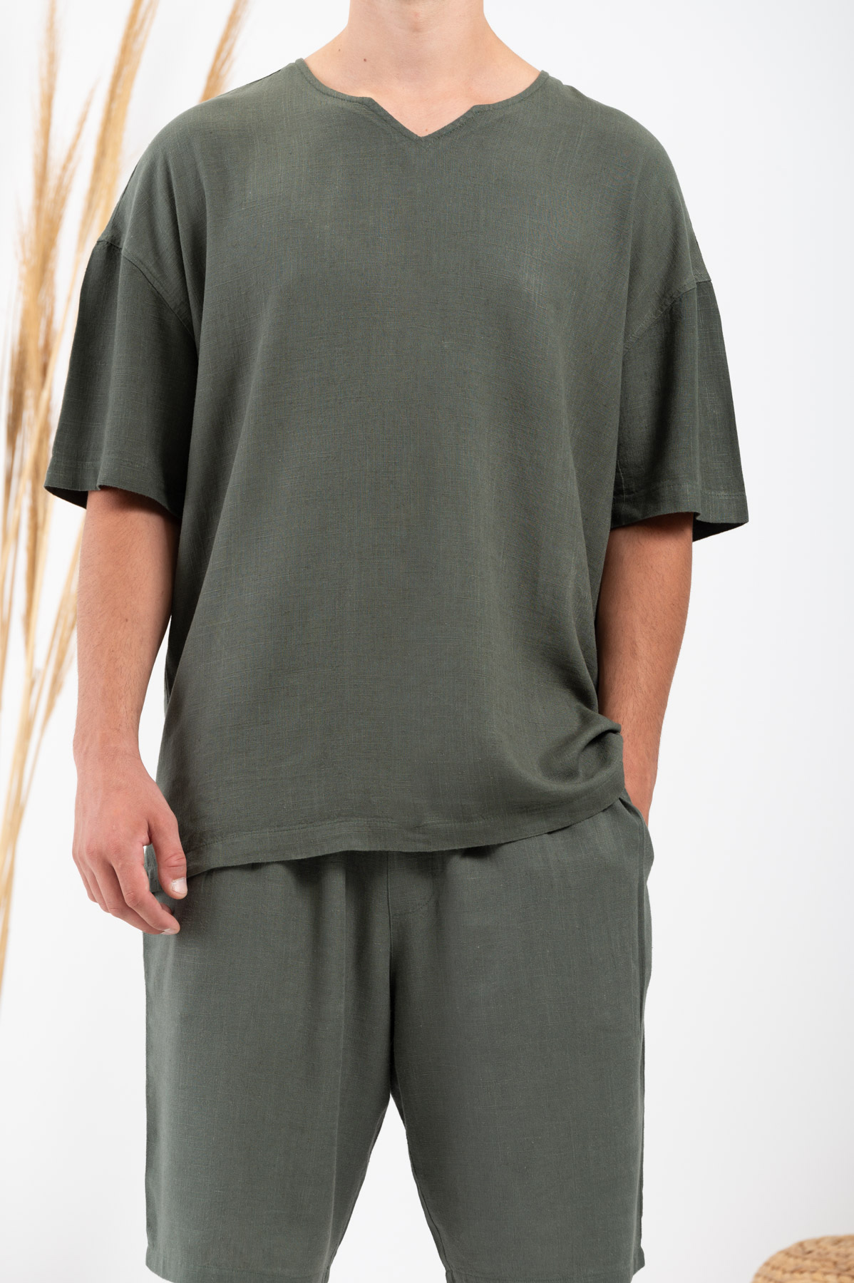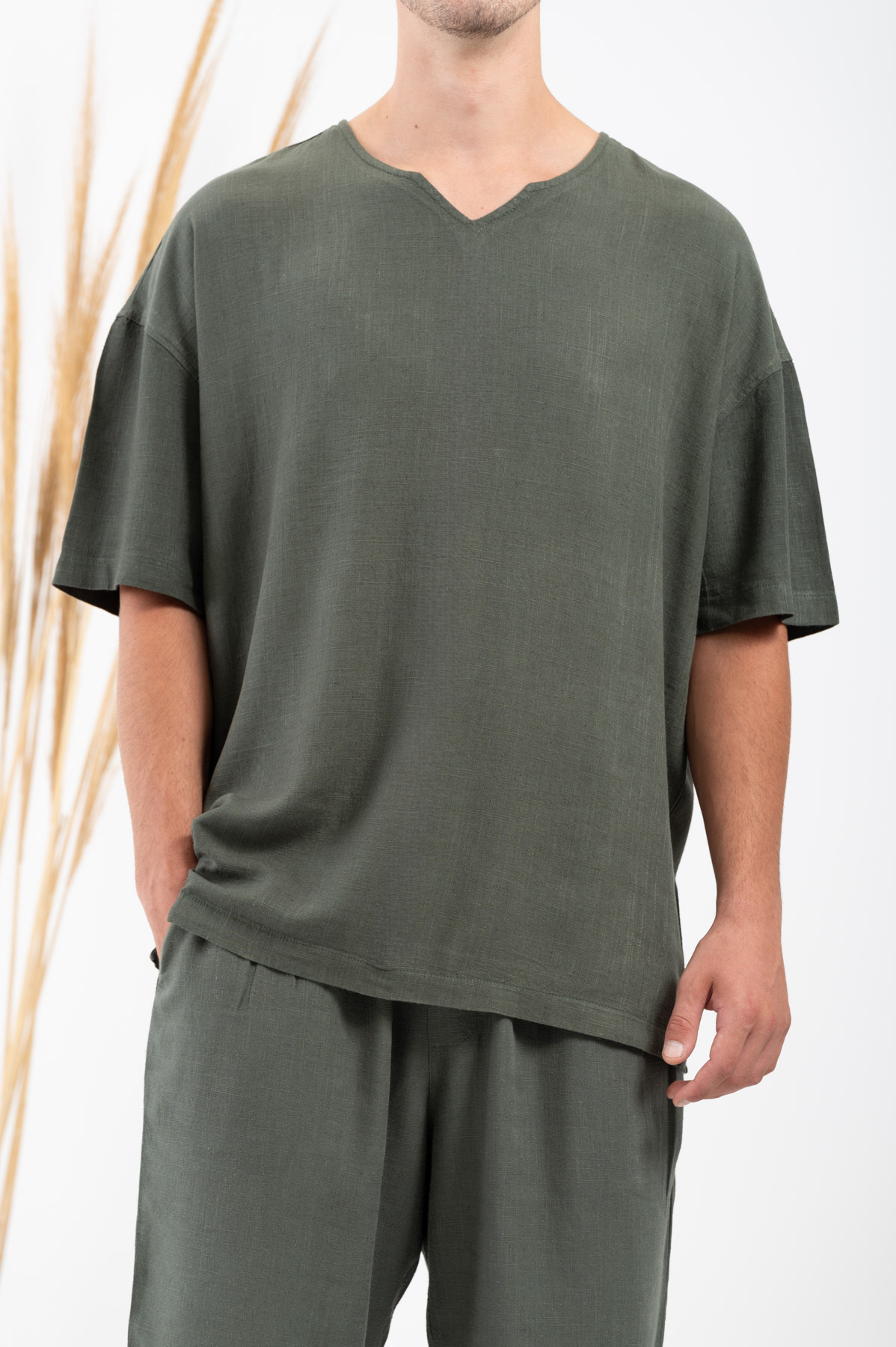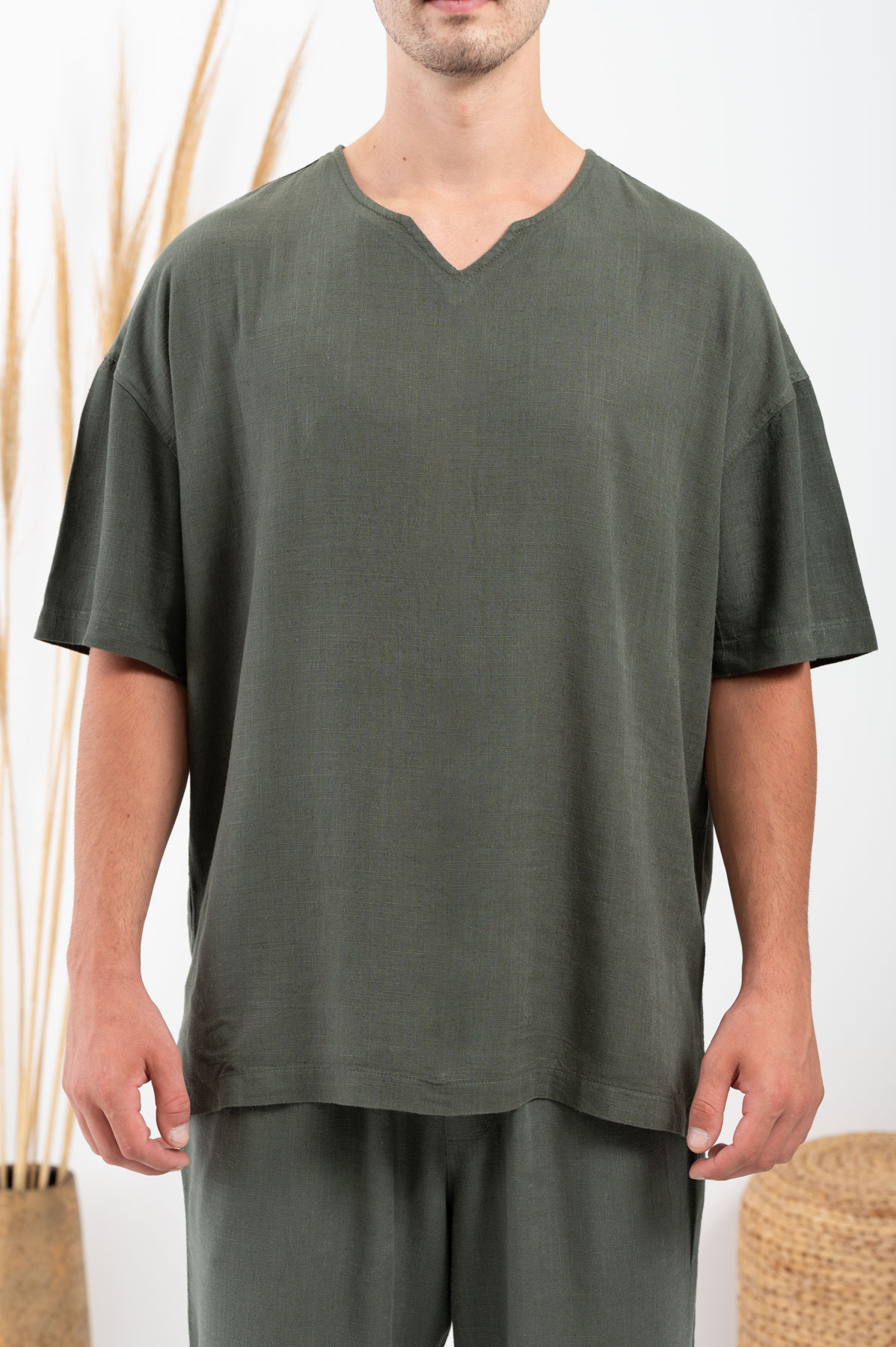 -Μπλούζα Vittorio Oversized Λινή Olive.