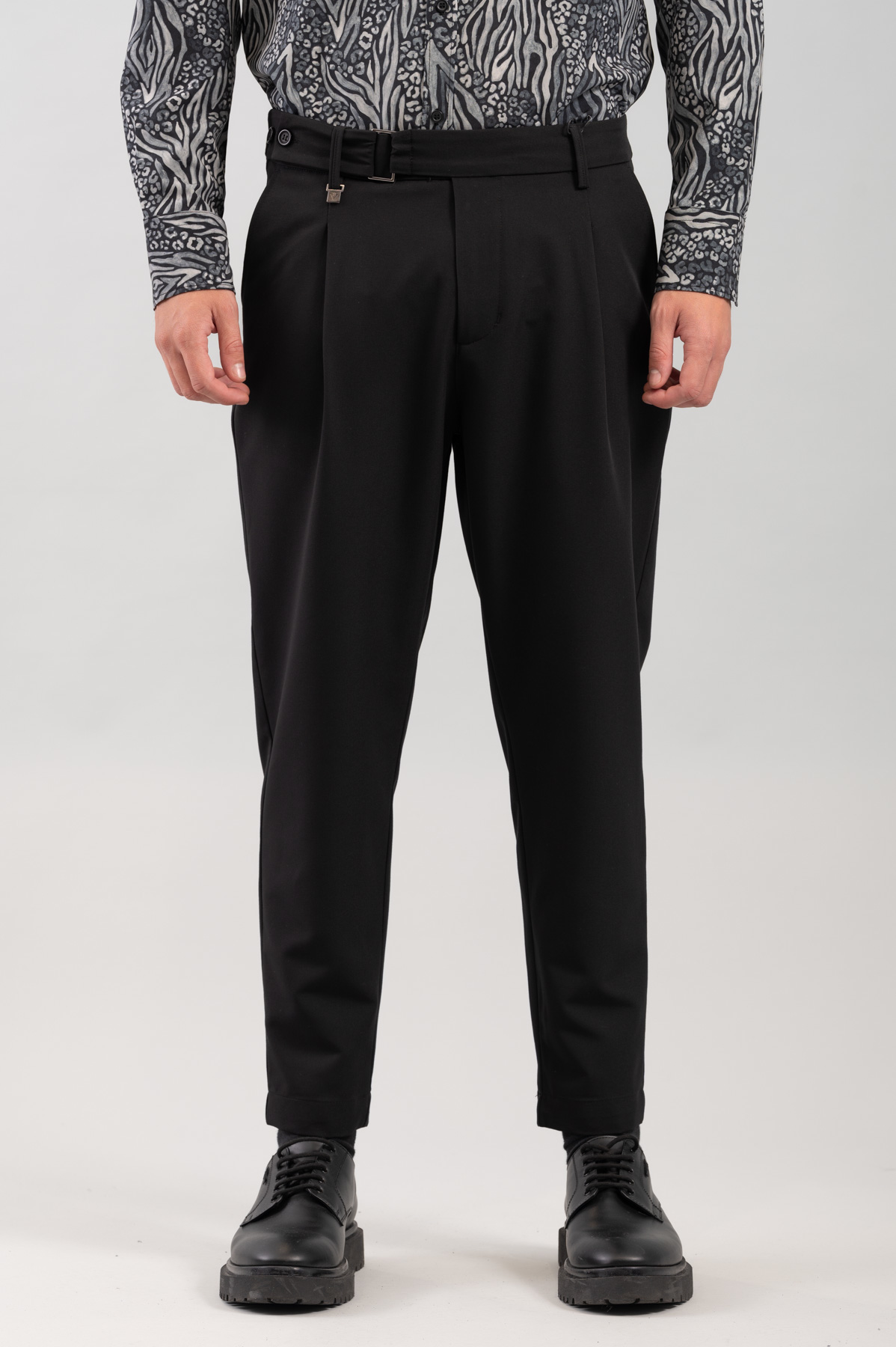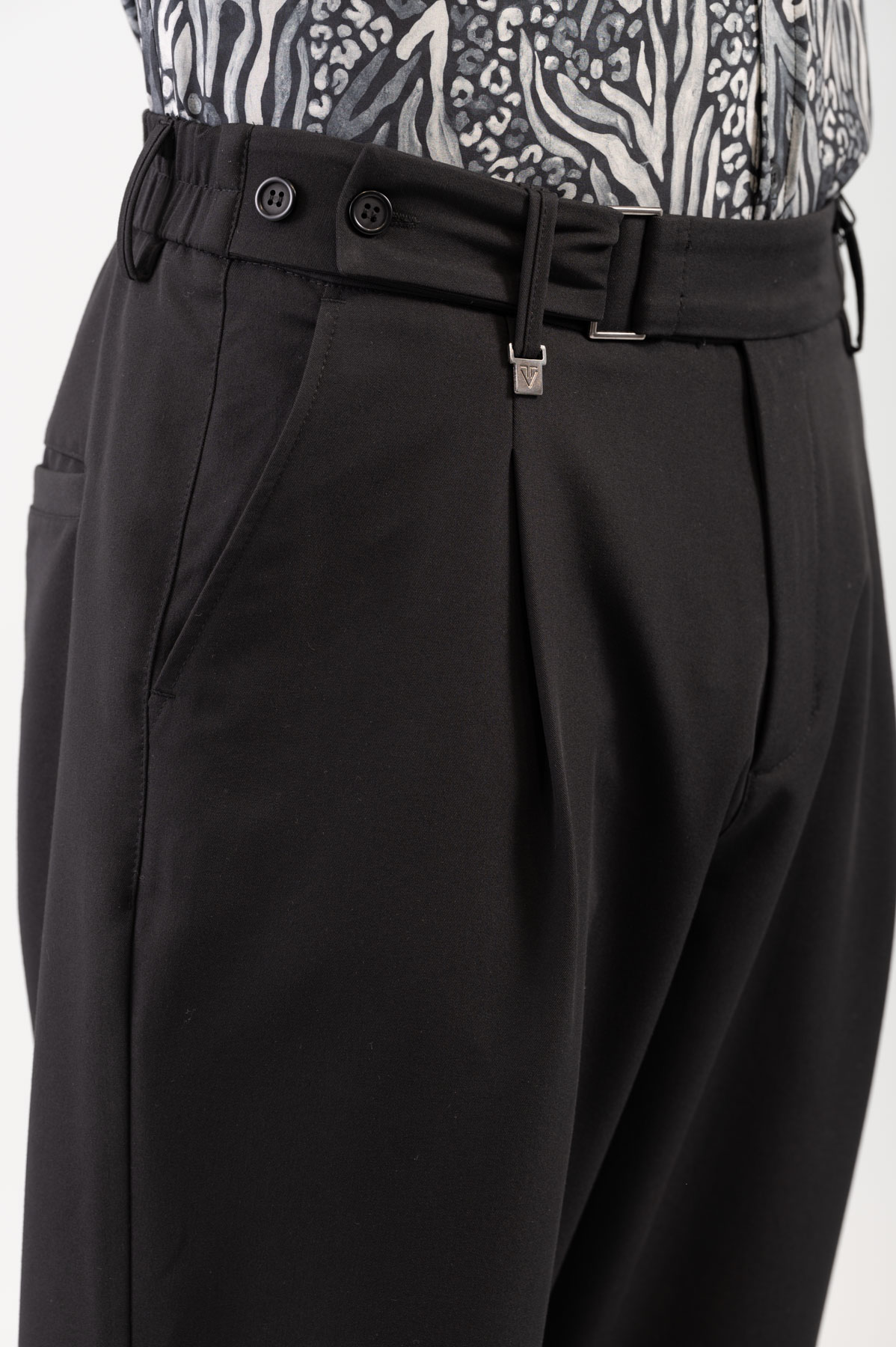 -Παντελόνι Vittorio μονόπιετο σε loose fit γραμμή, κλείσιμο με κουμπί και διακοσμητική αγκράφα .