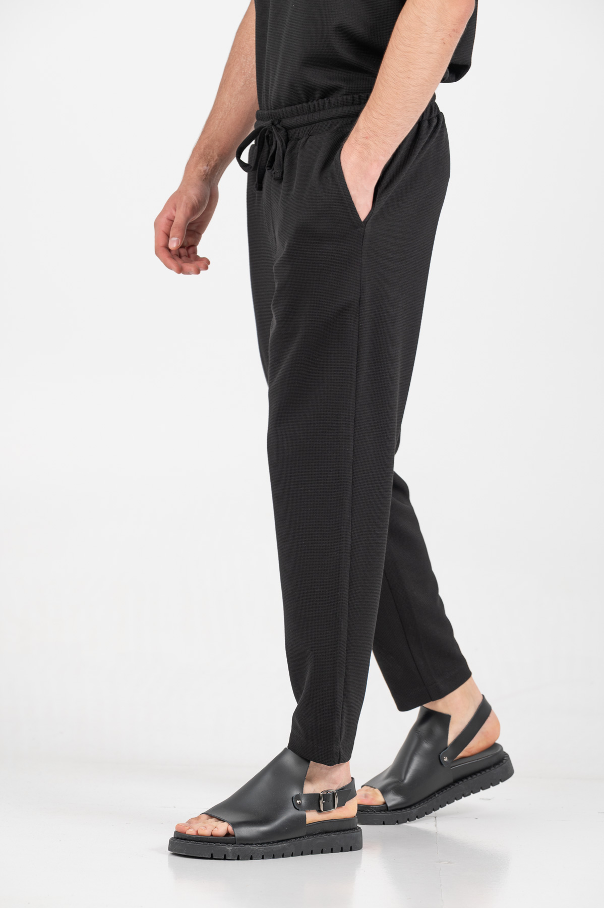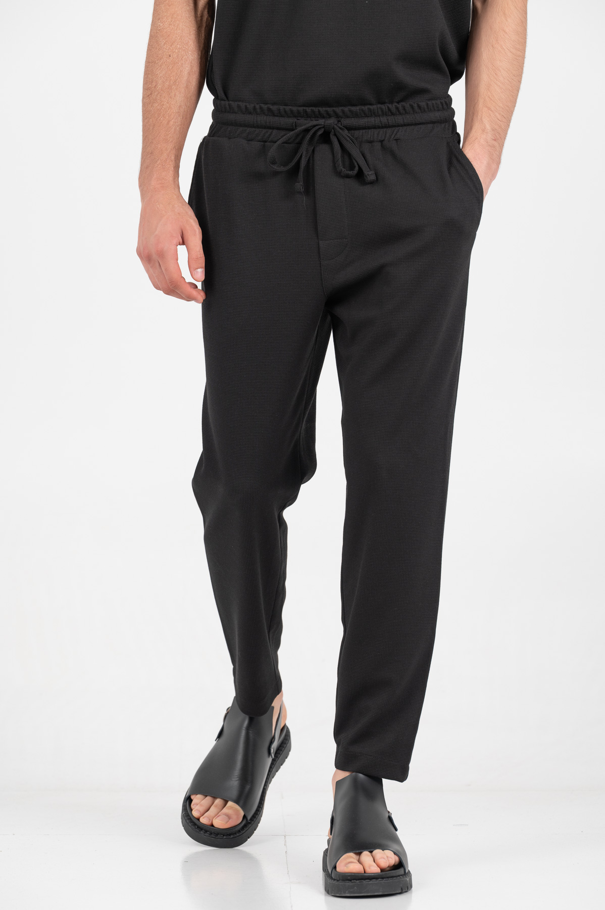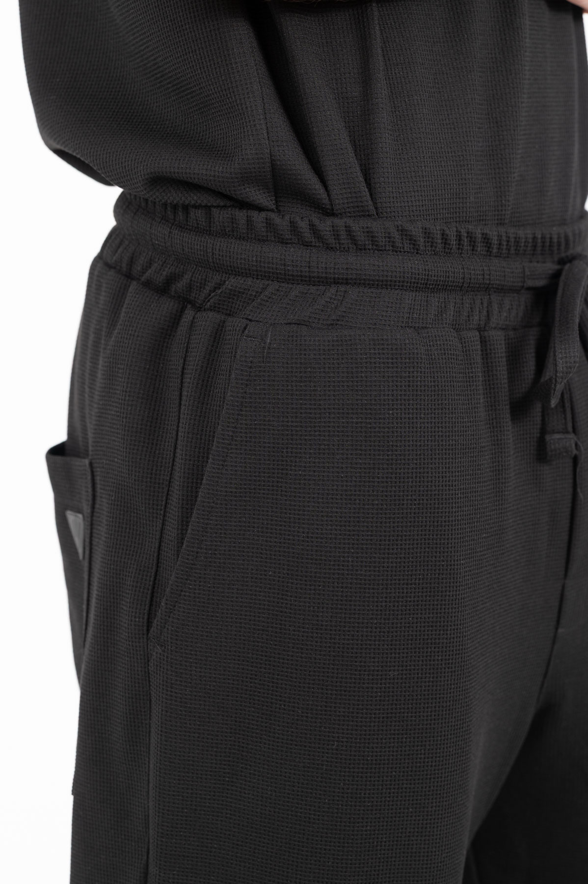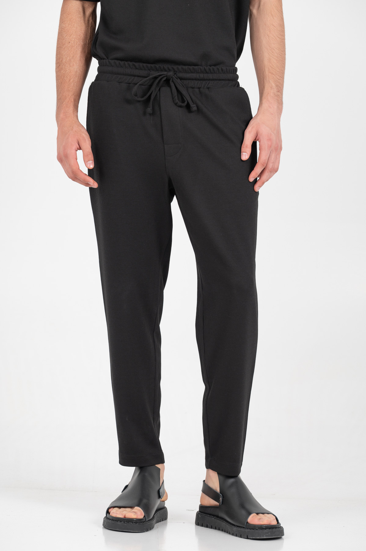 -Παντελόνι σε loose fit γραμμή με λάστιχο και κορδόνι στη μέση για καλύτερη εφαρμογή .