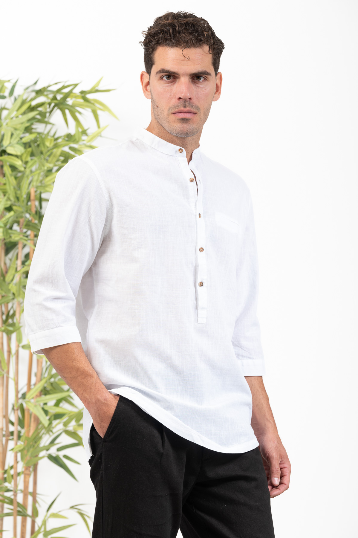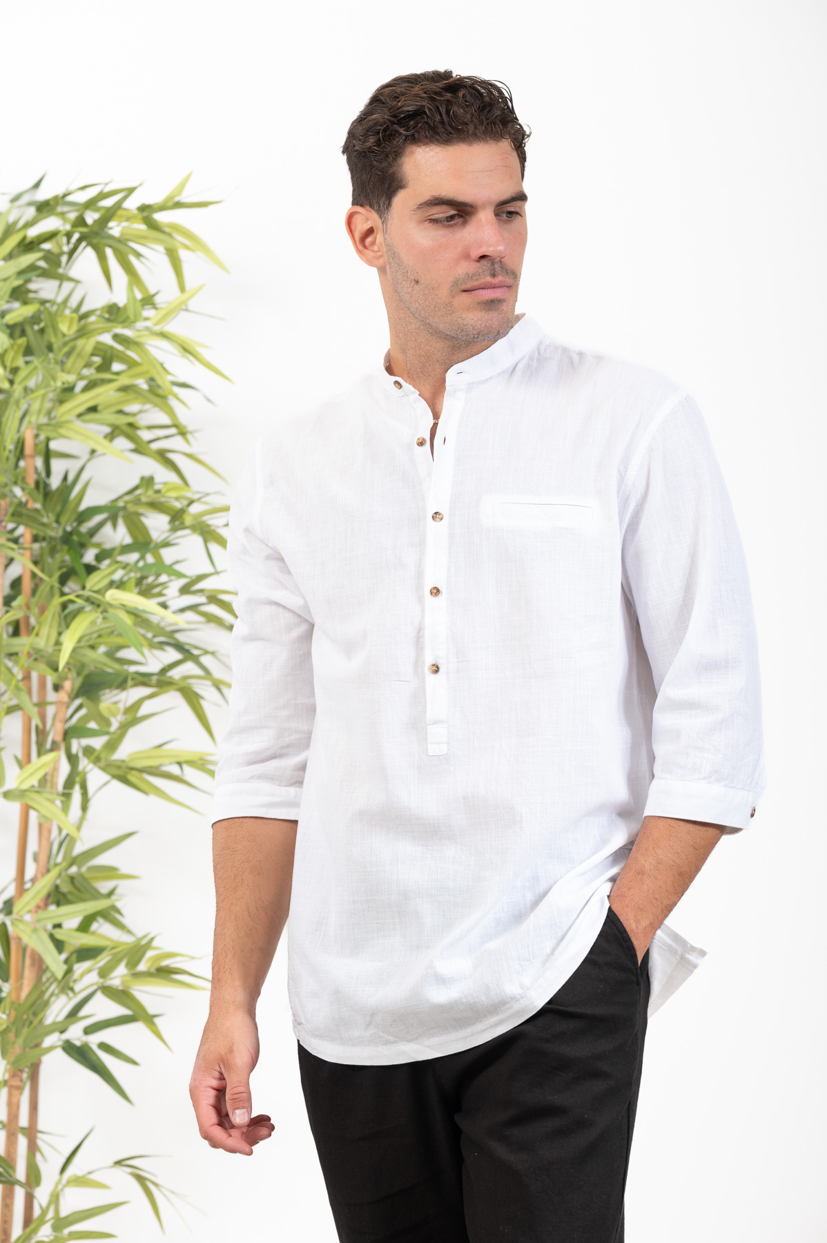 -Πουκαμίσα Vittorio με μαο γιακά και τρουακάρ μανίκι