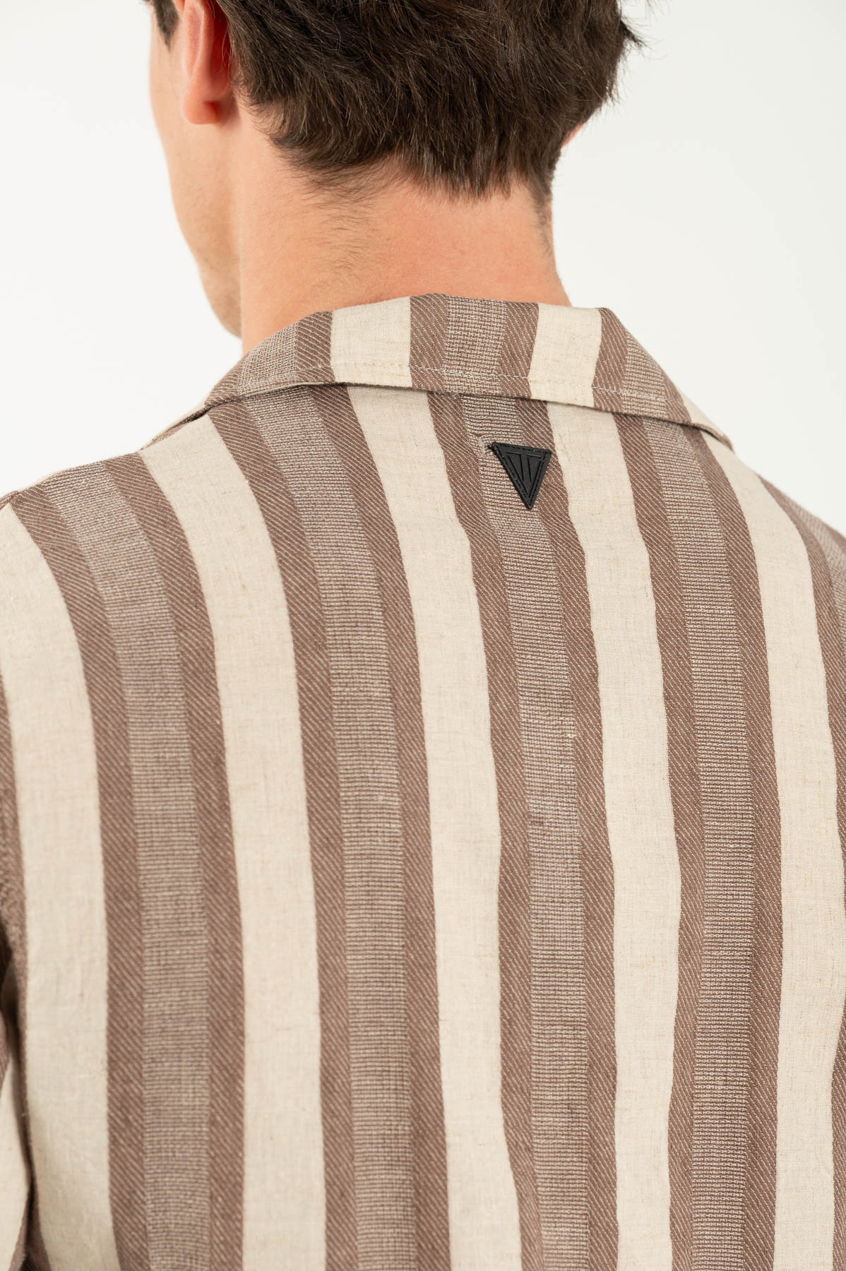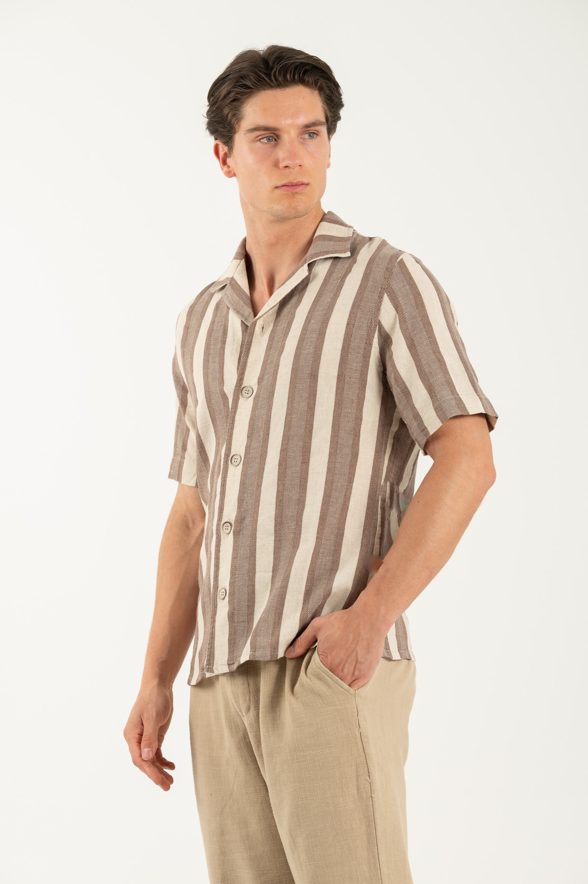 Λινό πουκάμισο ριγέ με byron γιακά