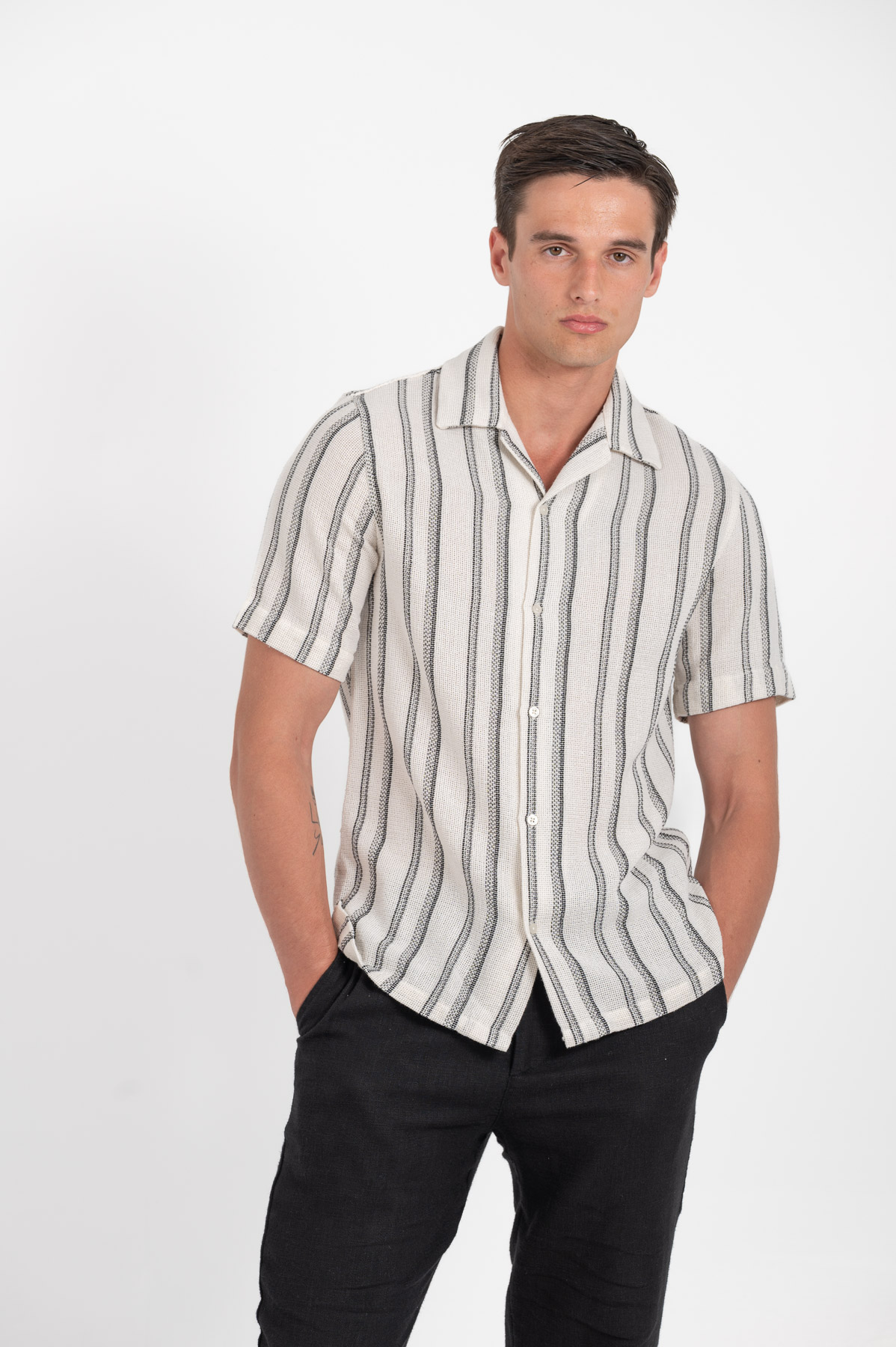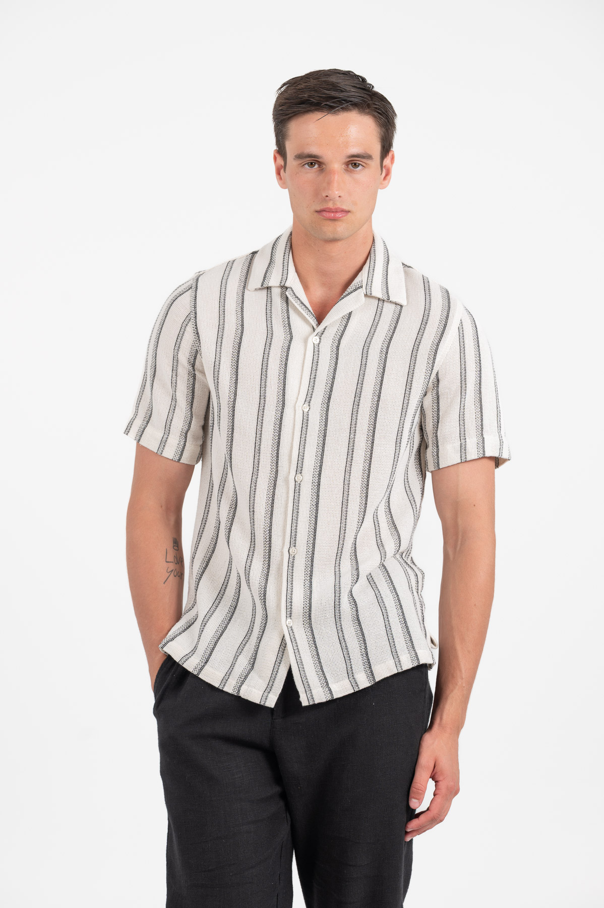 -Πουκάμισο ριγέ με Byron γιακά.