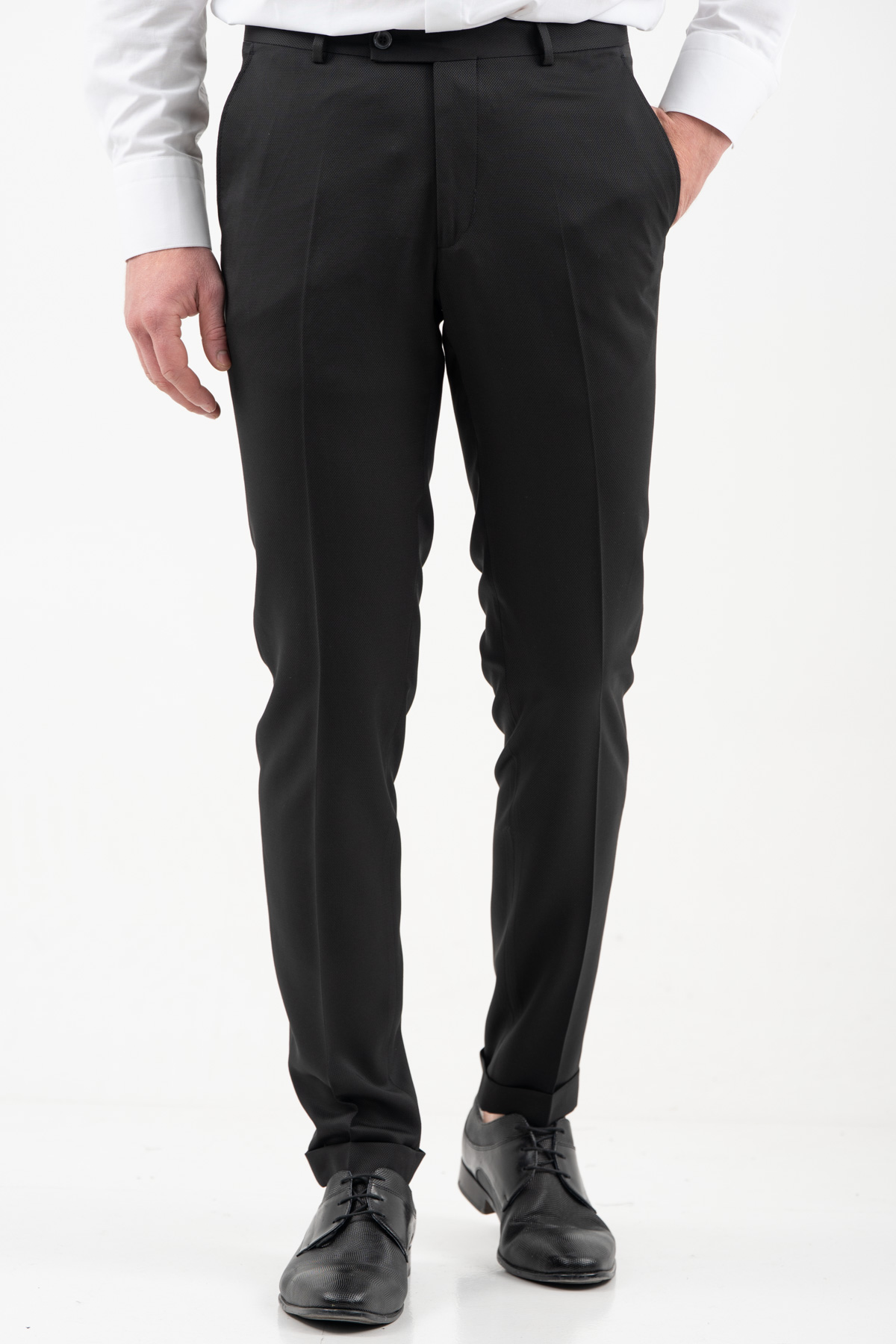 -Κοστούμι σε γραμμή slim fit και ύφασμα comfort σε ζακάρ πλέξη