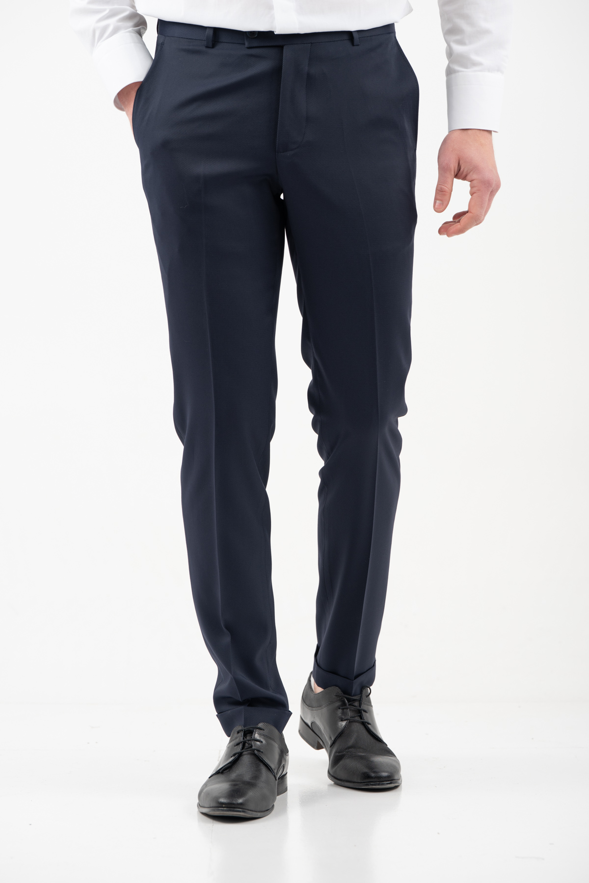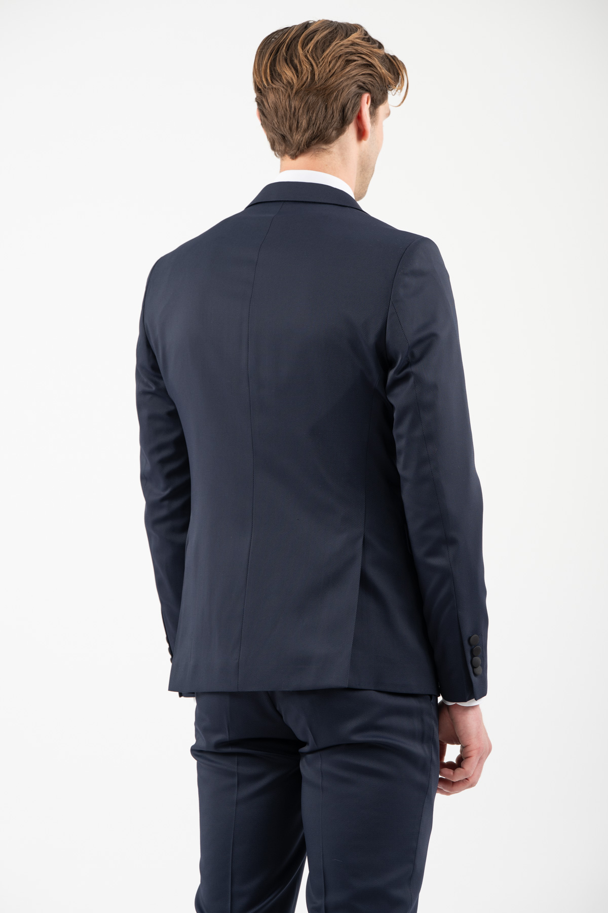 -Κοστούμι σε γραμμή slim fit και ύφασμα comfort σε ζακάρ πλέξη