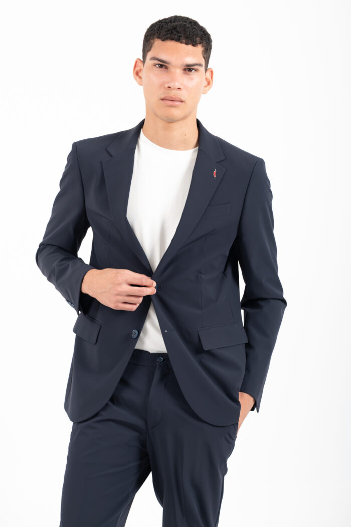 -Κοστούμι σε ύφασμα performance με ελαστικότητα που προσφέρει εξαιρετική άνεση.