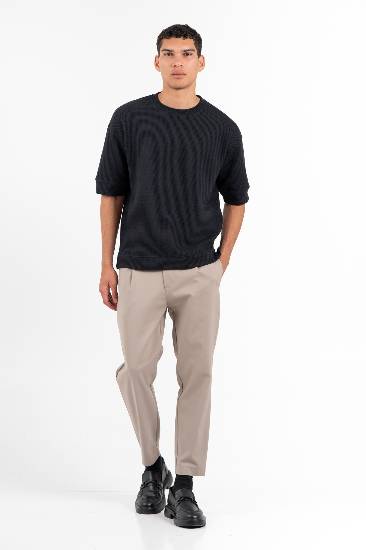 -Μπλούζα σε πικέ πλέξη oversized με τρουακάρ μανίκι