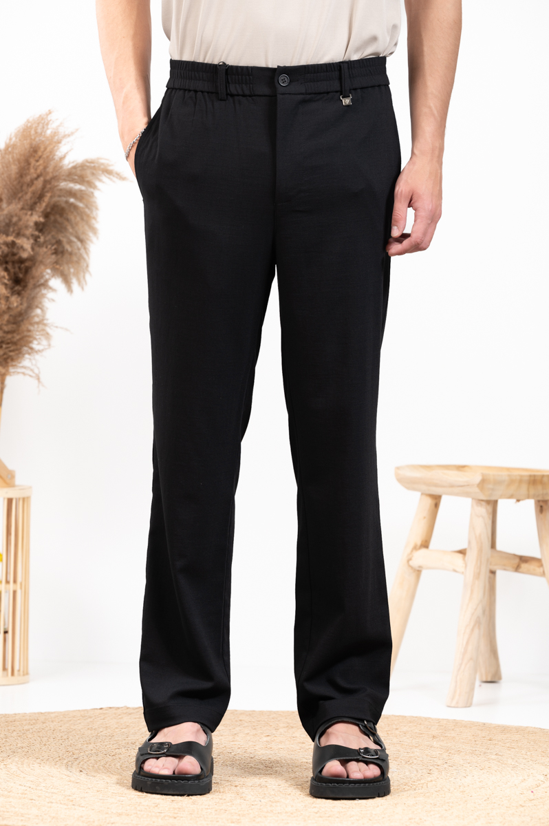 -Παντελόνι σε Straight Fit γραμμή με λάστιχο στη μέση και κλείσιμο με κουμπί