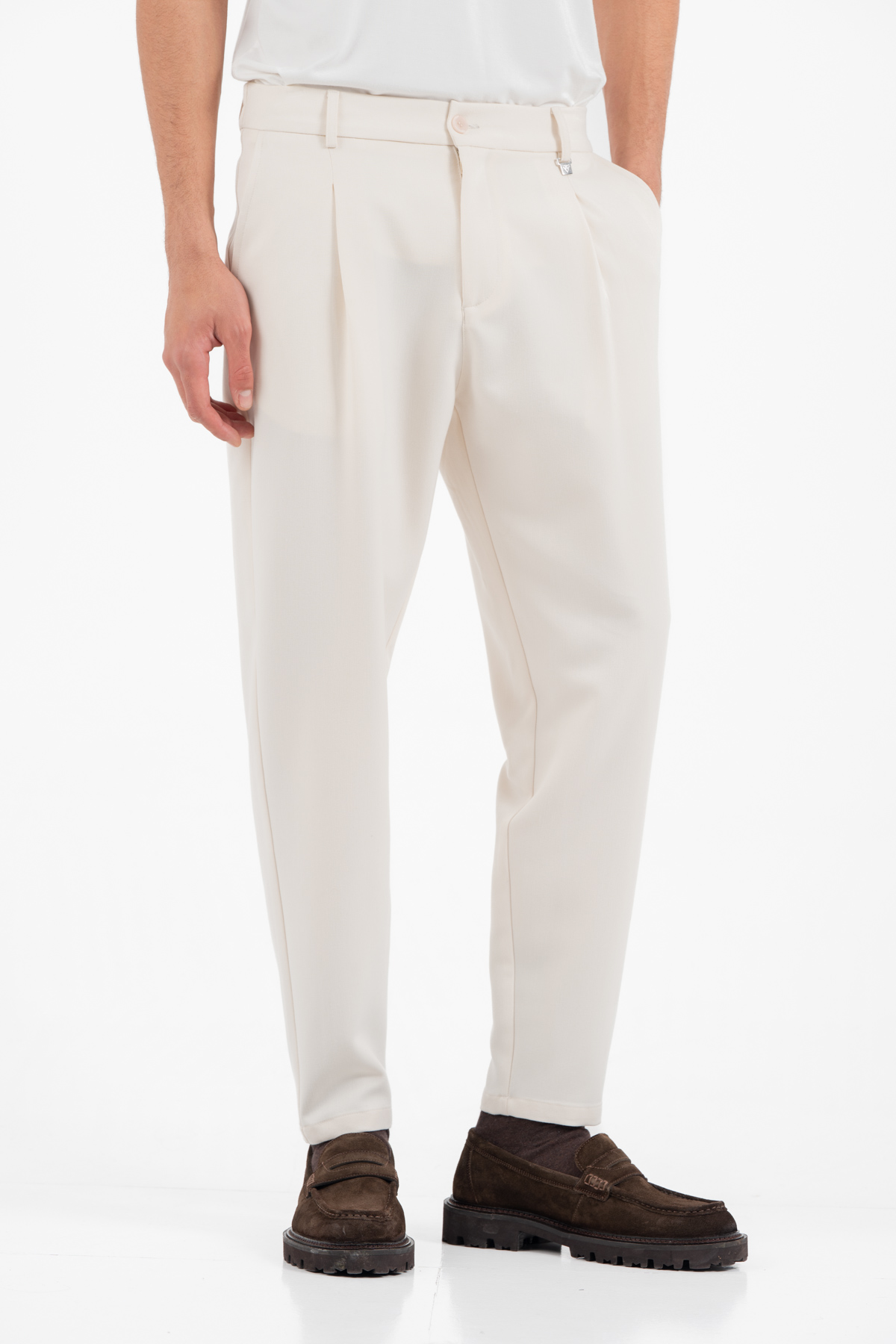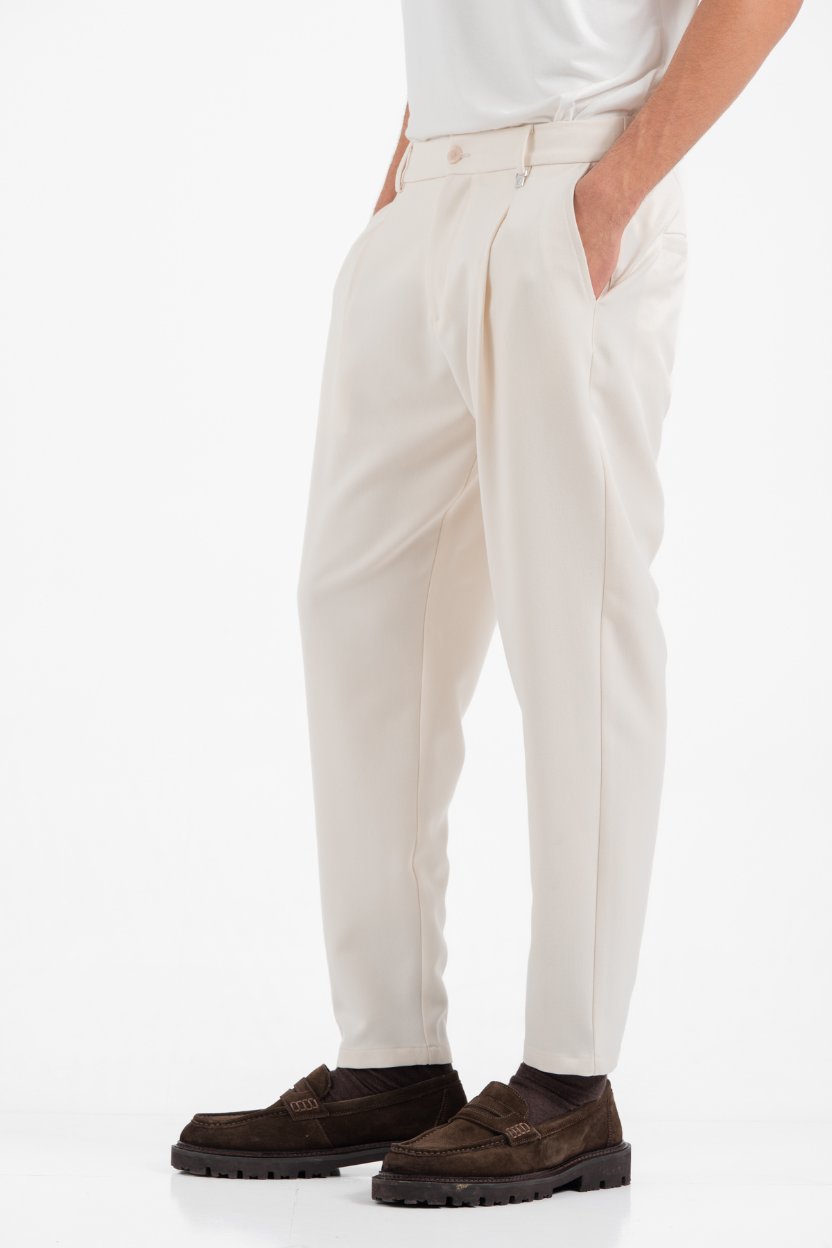 -Παντελόνι μονόπιετο σε ίσια γραμμή με λάστιχο στη μέση για καλύτερη εφαρμογή