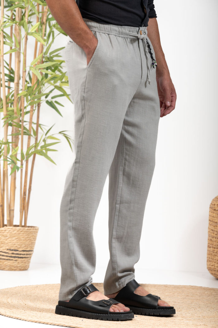 -Λινό παντελόνι Vittorio με λάστιχο στη μέση και δέσιμο με κορδόνι.