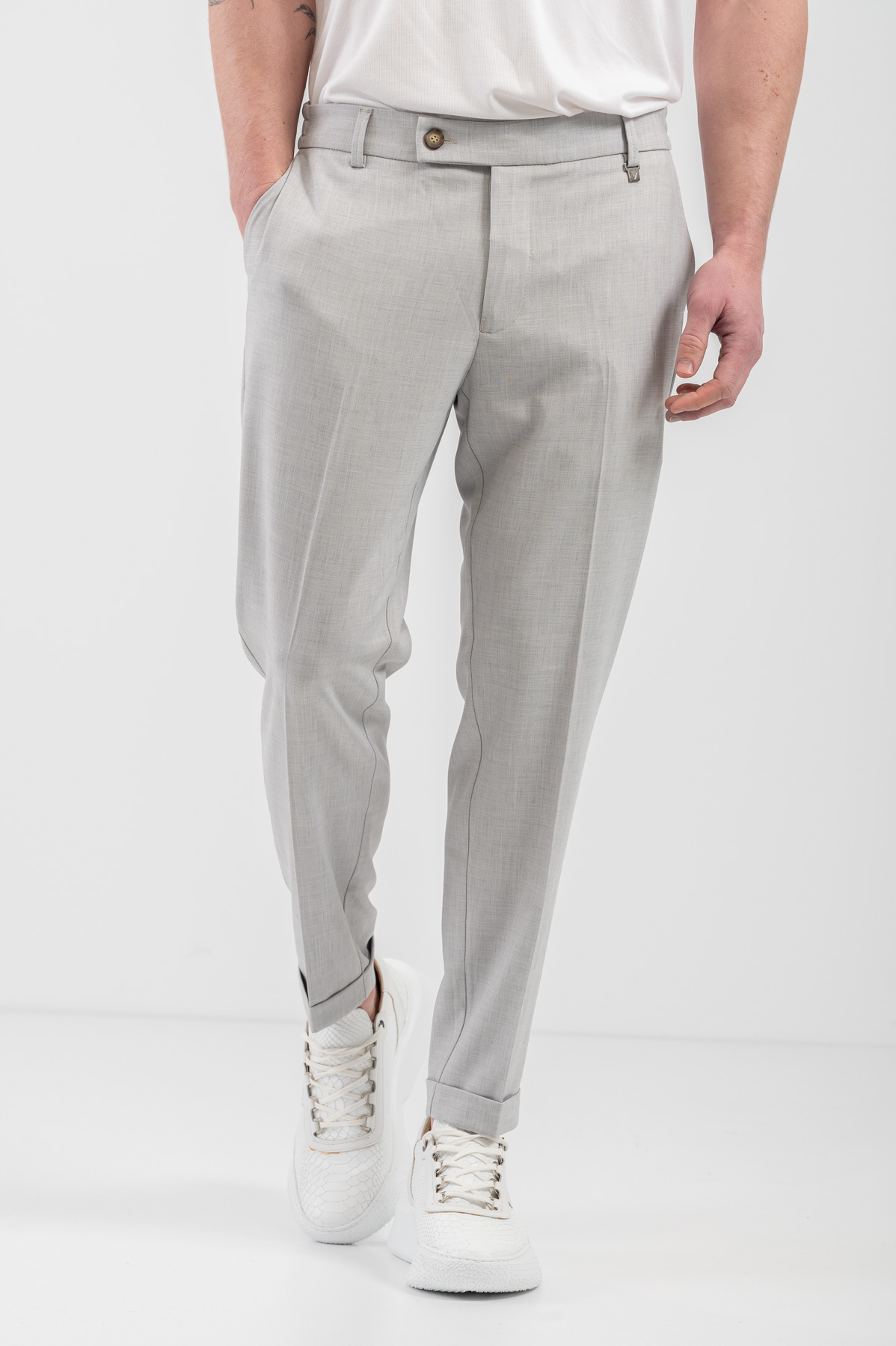 -Παντελόνι σε slim γραμμή, λάστιχο στη μέση και τελείωμα σε ρεβέρ.