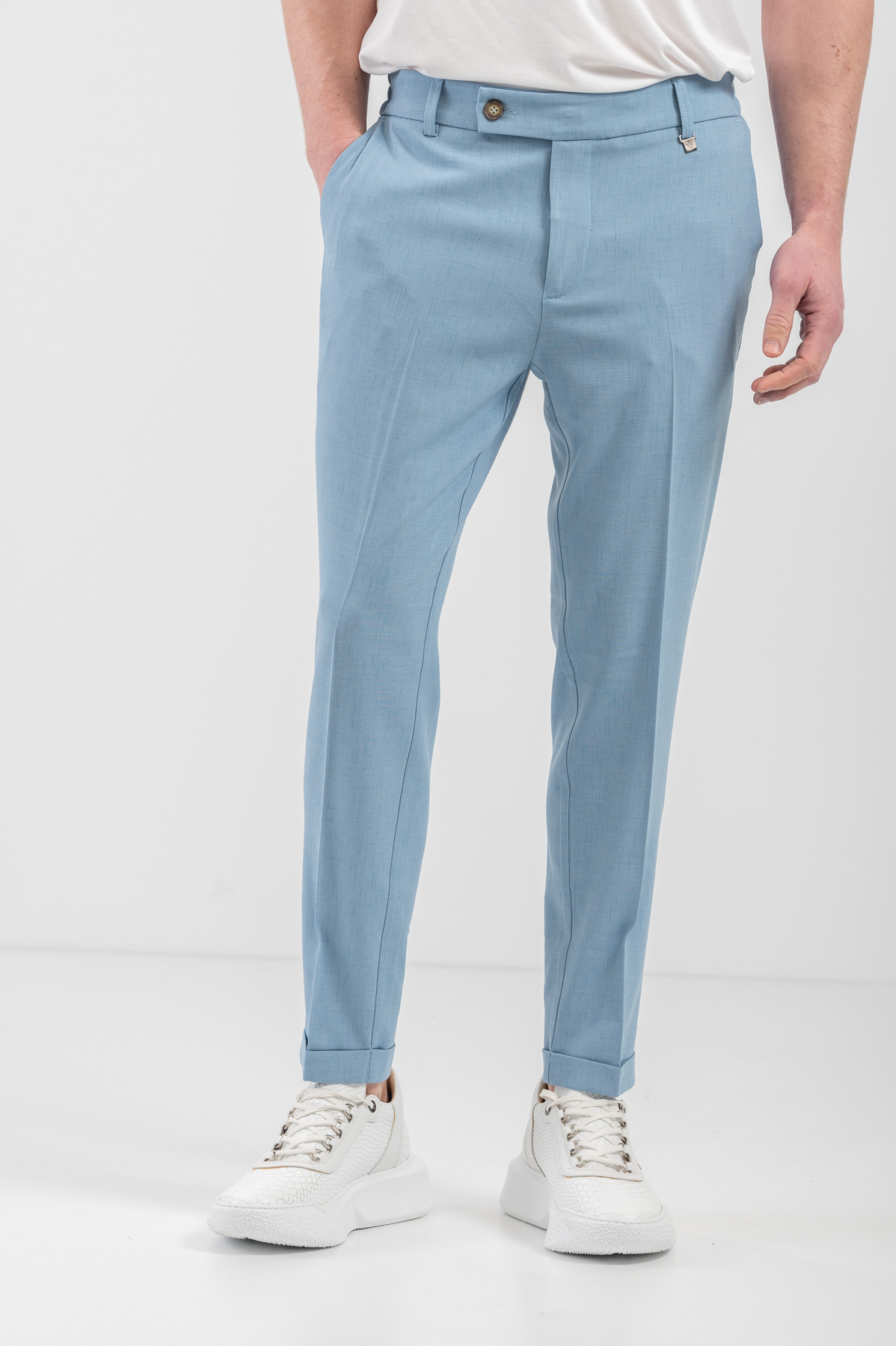 -Παντελόνι σε slim γραμμή, λάστιχο στη μέση και τελείωμα σε ρεβέρ.