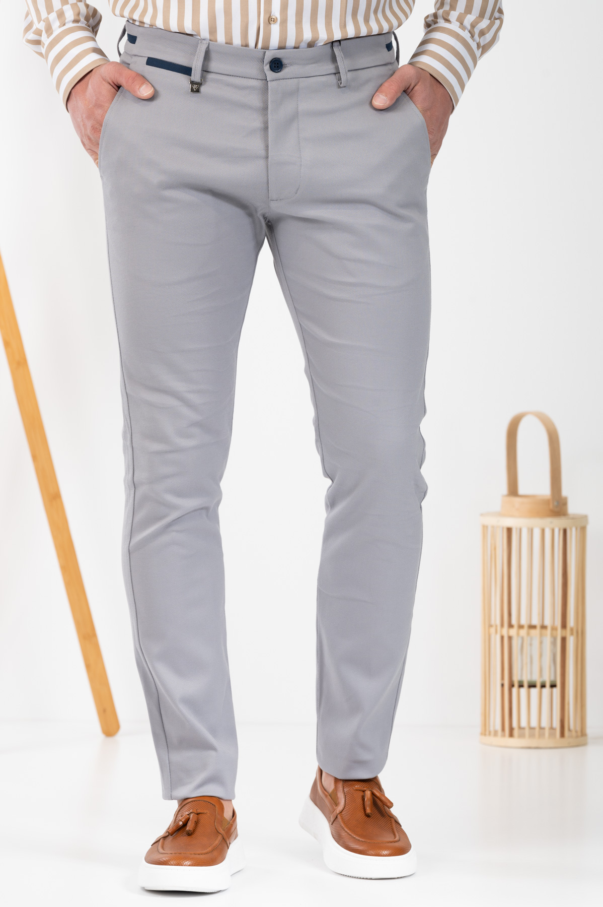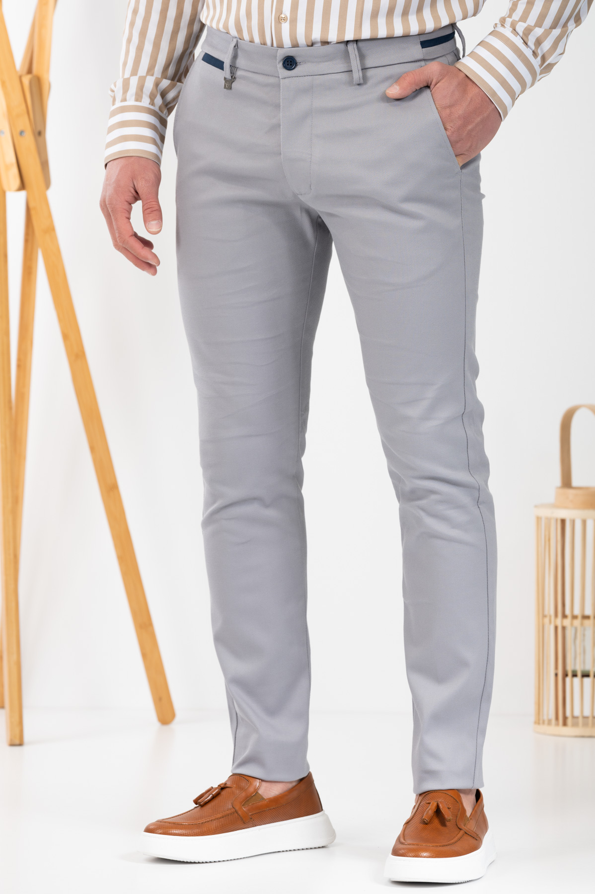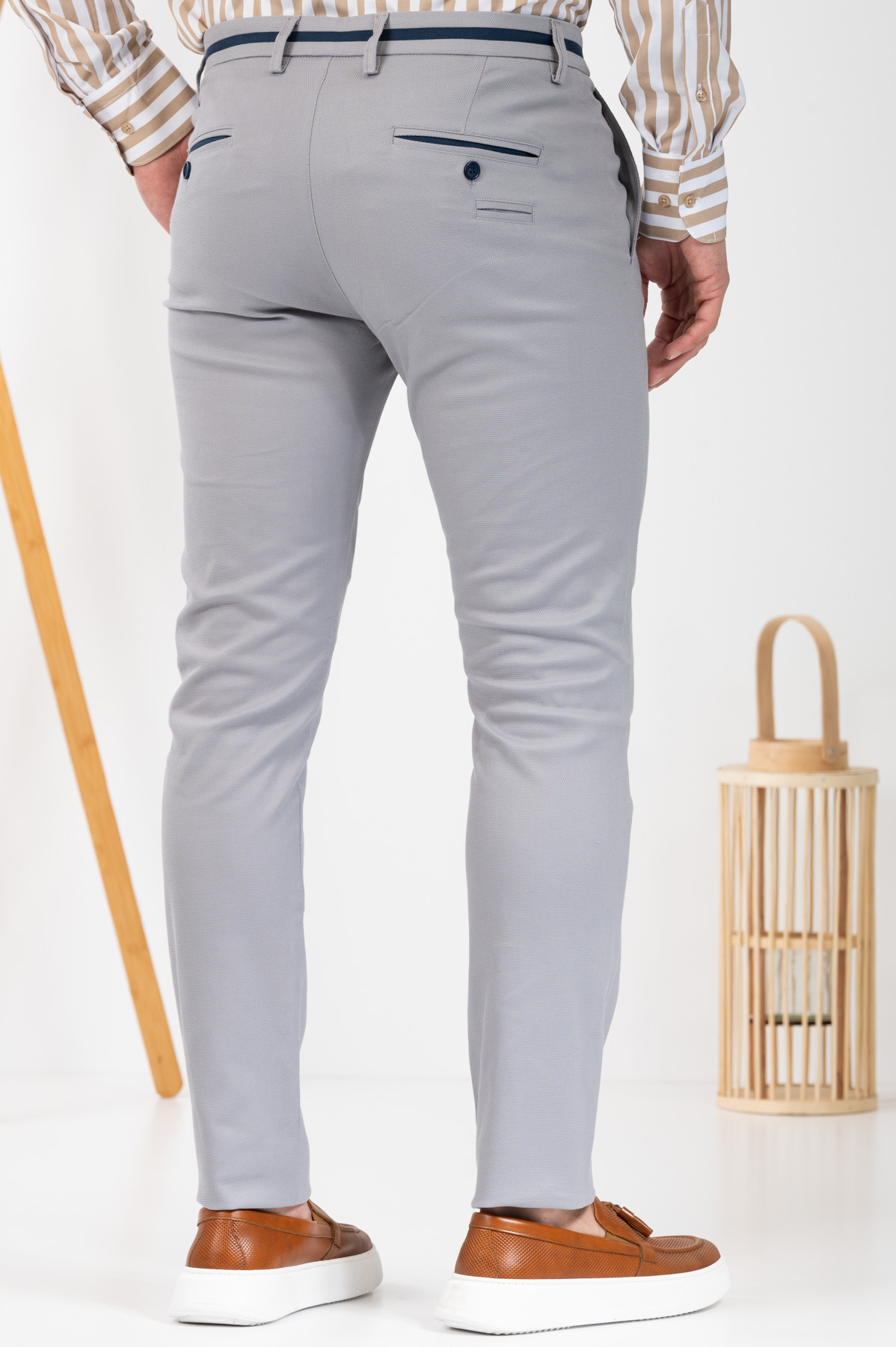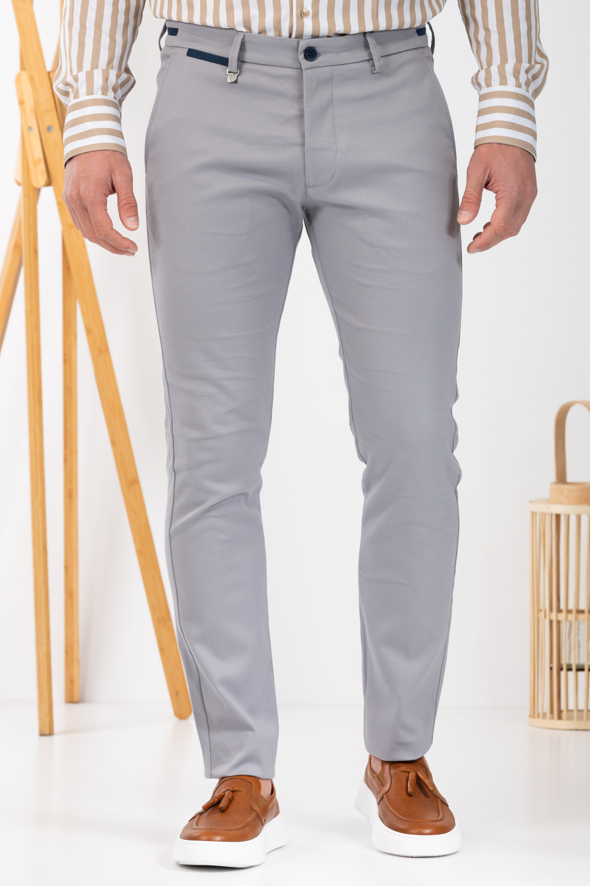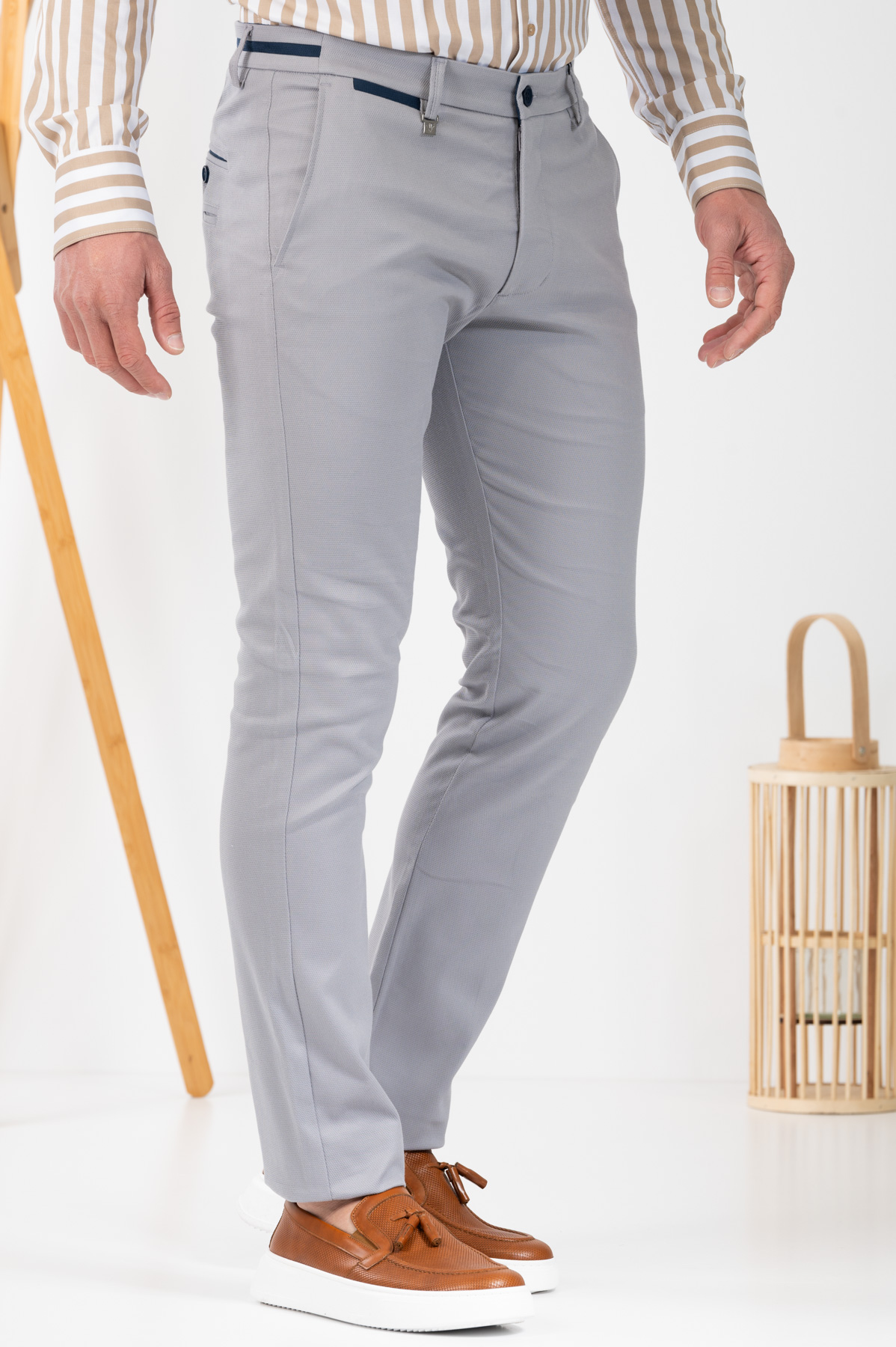 -Παντελόνι chino με δίχρωμες λεπτομέρειες σε ζωνάρι και μέση