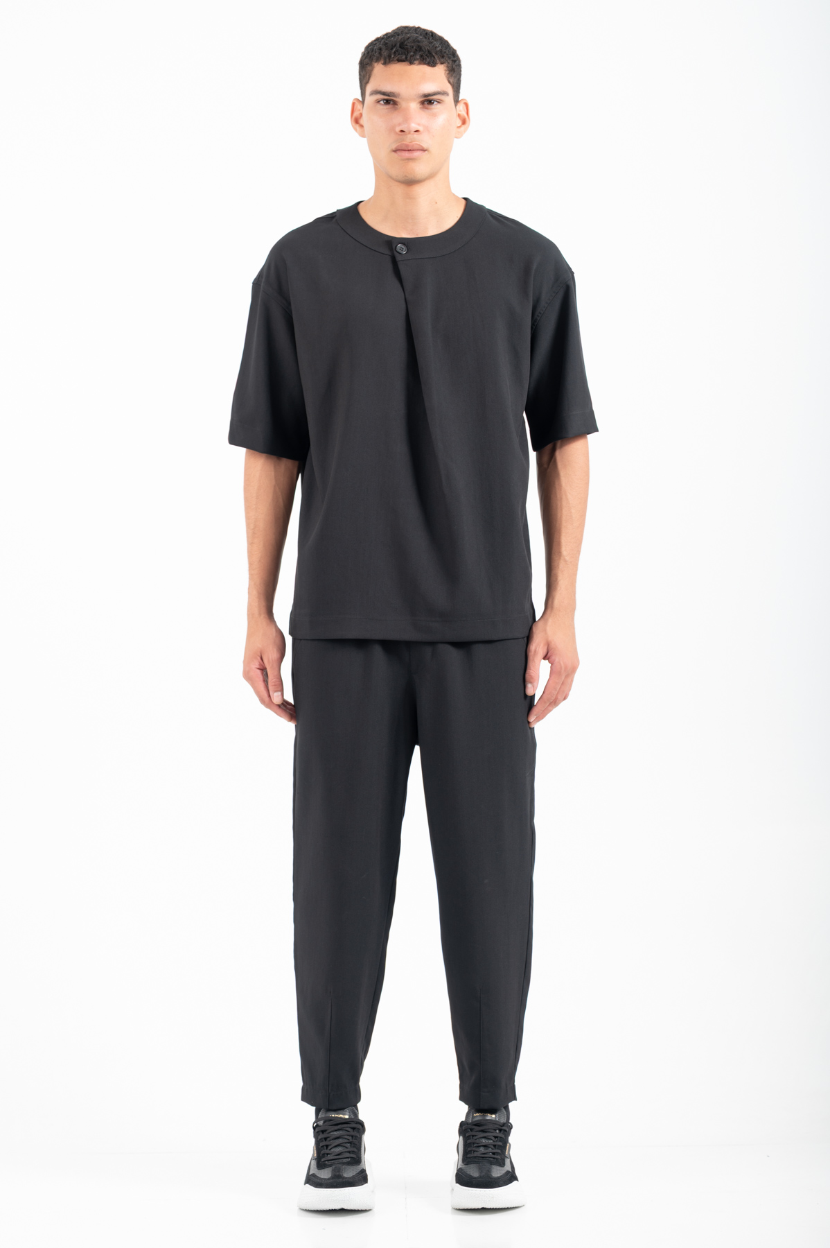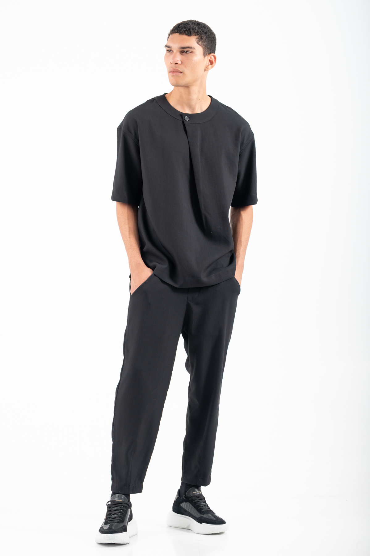 -Παντελόνι σε loose fit γραμμή,λάστιχο στη μέση και κλείσιμο με κορδόνι
