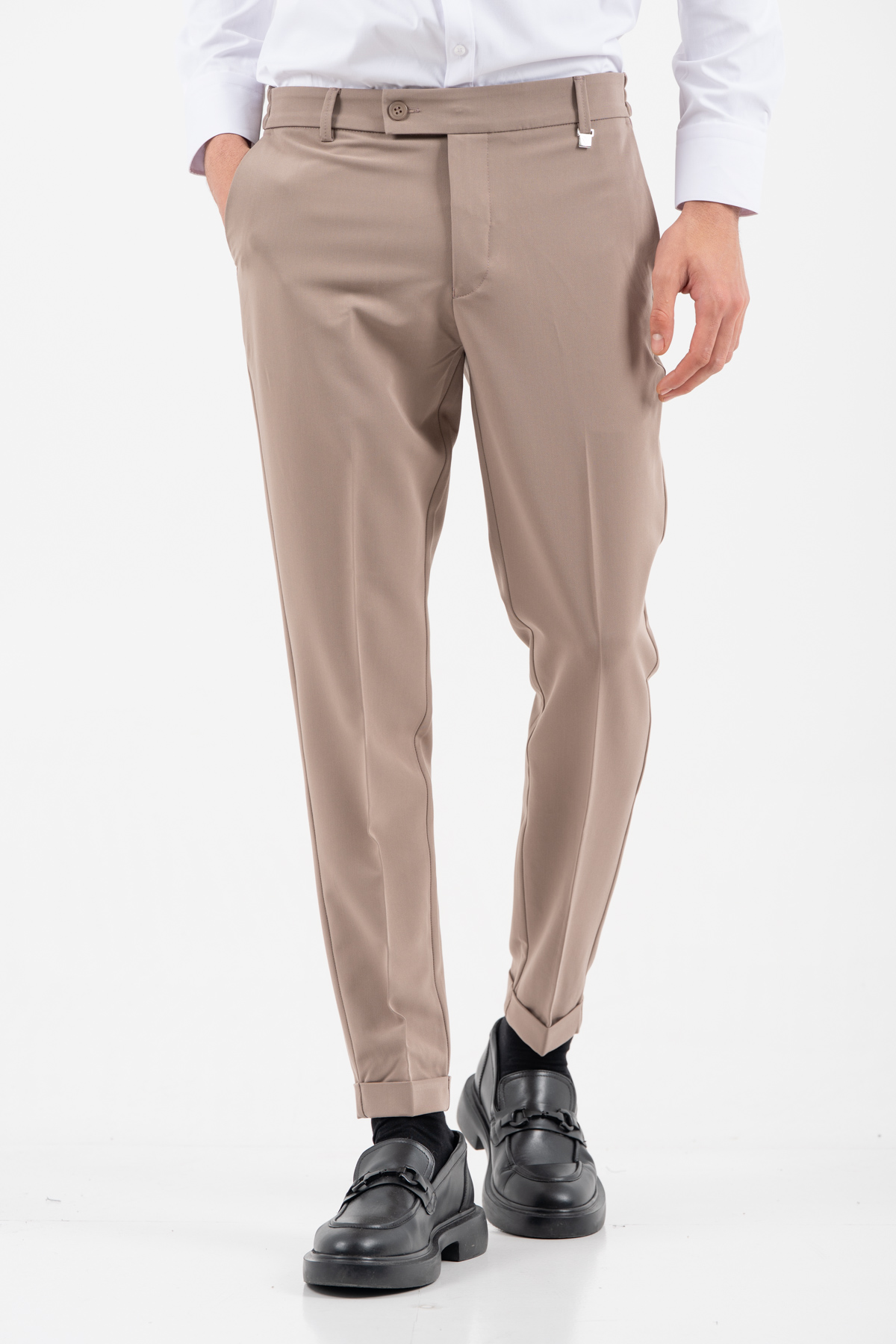 -Παντελόνι σε slim γραμμή. Κλείσιμο με κουμπί και λάστιχο στη μέση για καλύτερη εφαρμογή