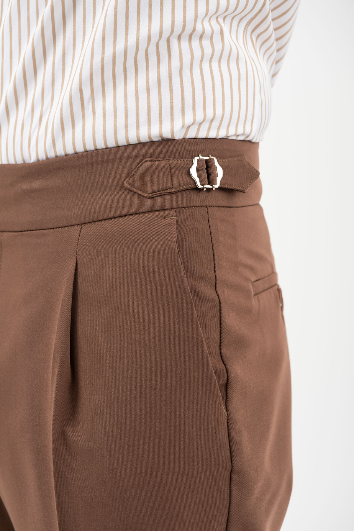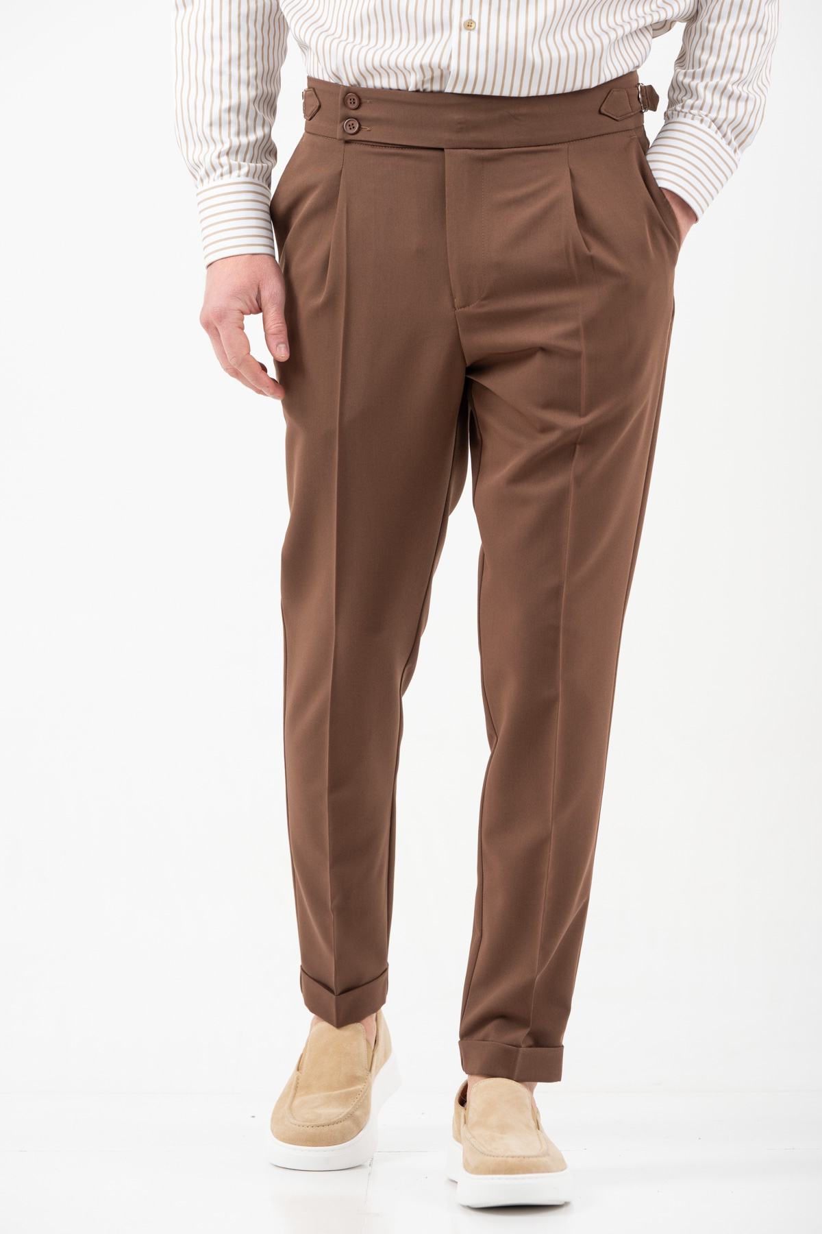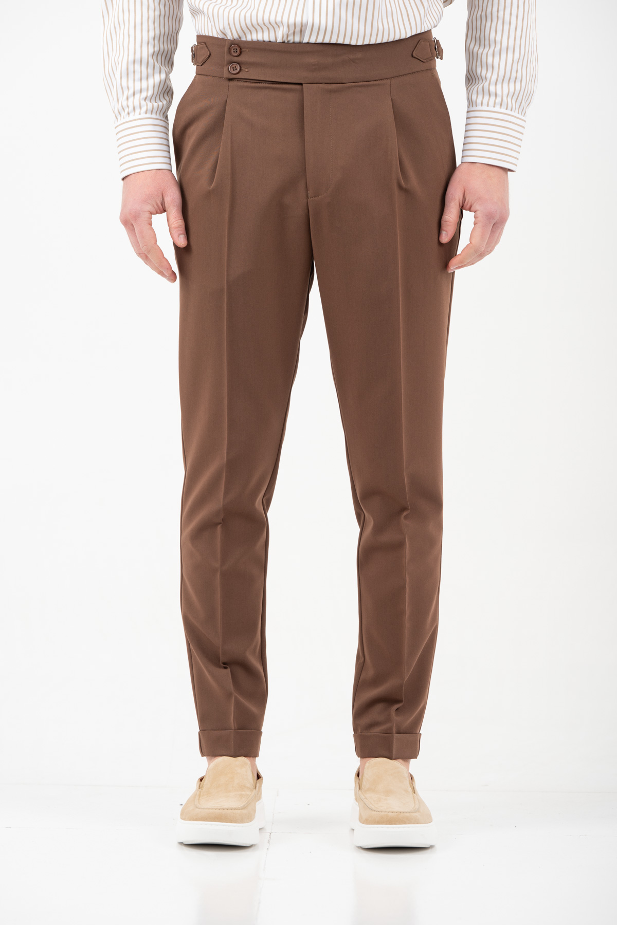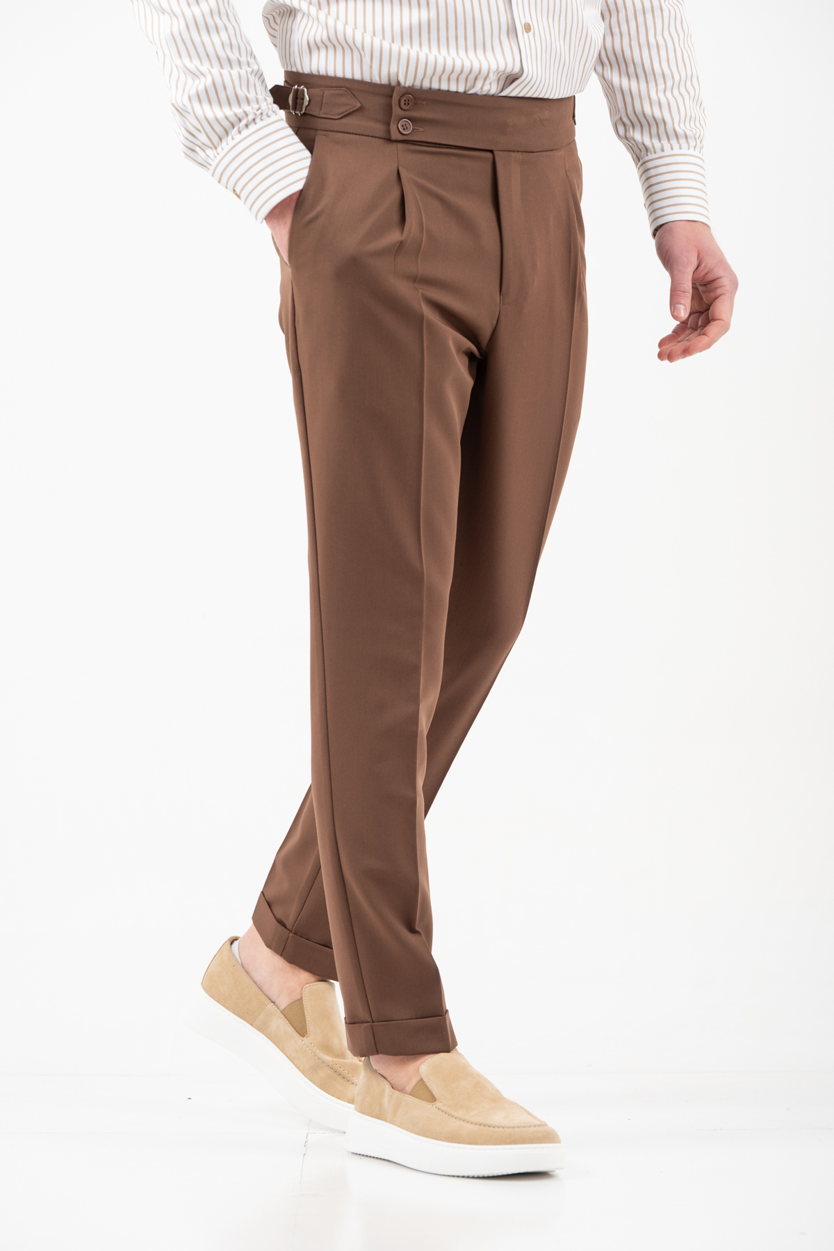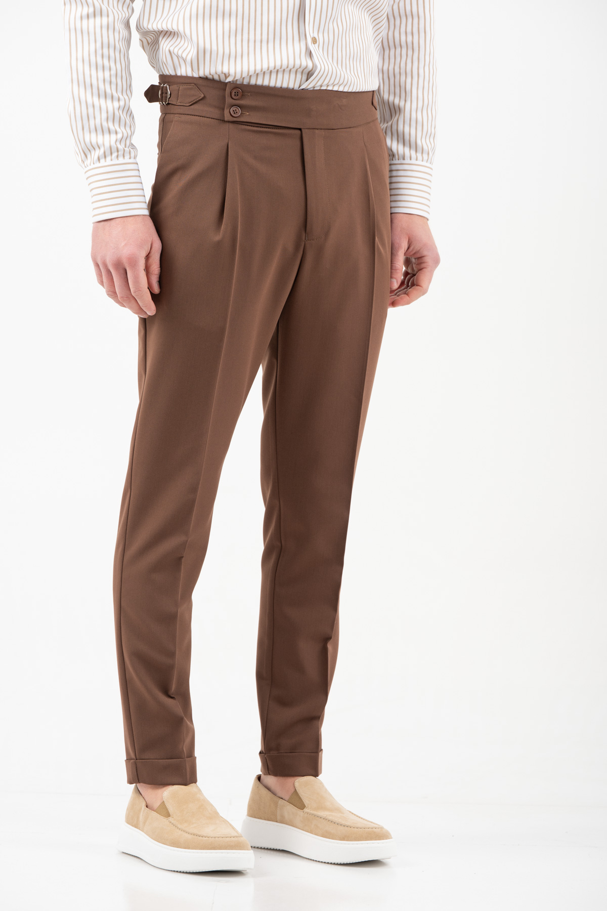-Παντελόνι με πιέτα διπλό κουμπί και αγκράφα στο πλάι