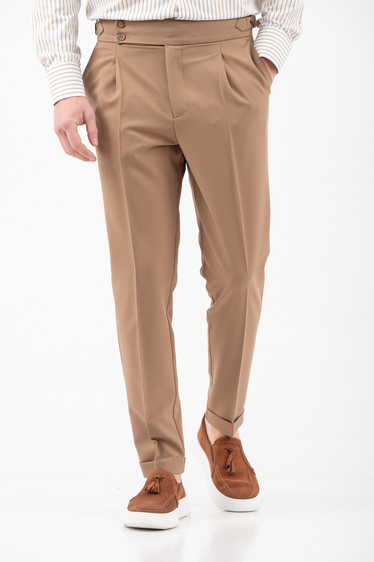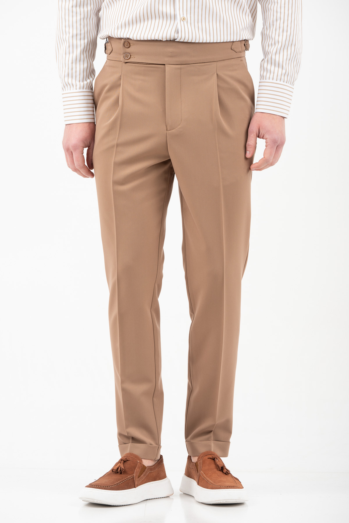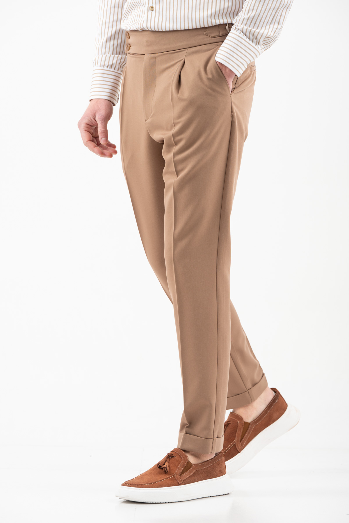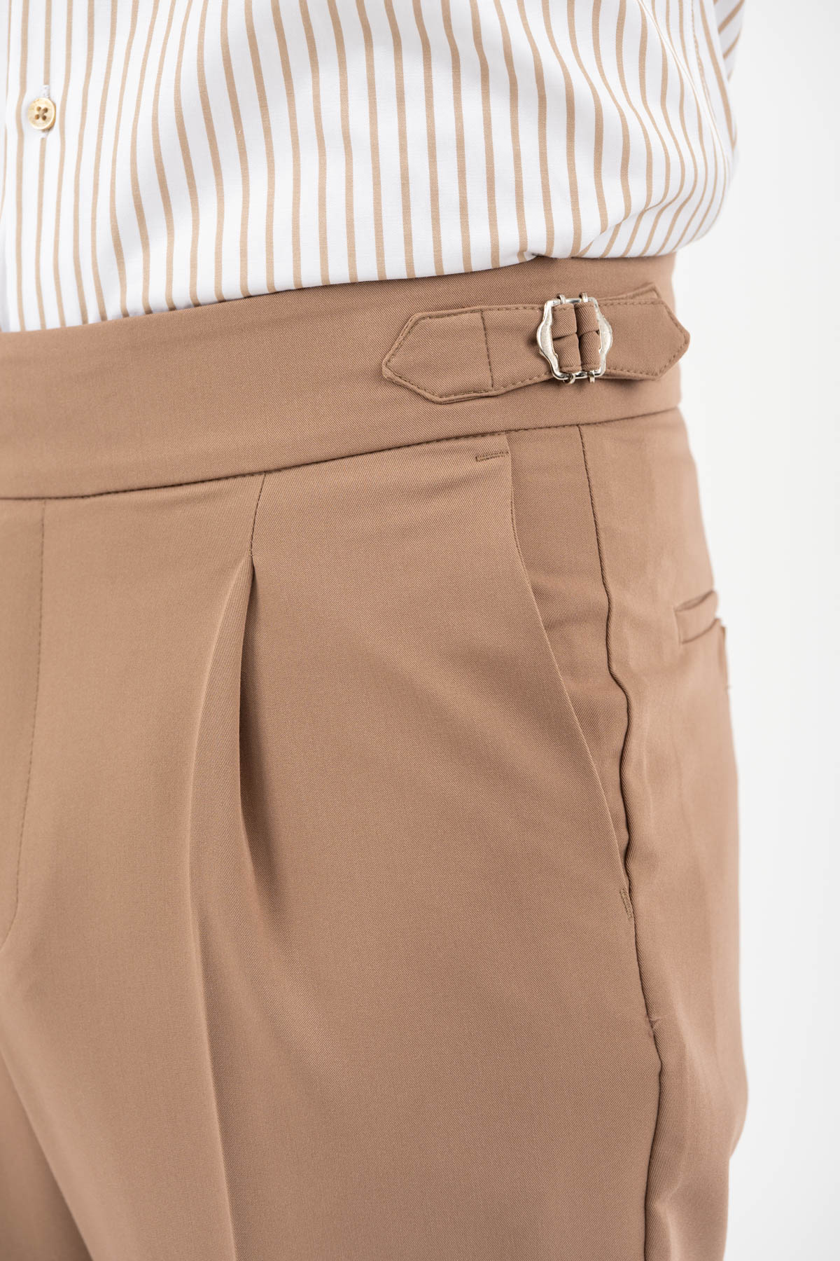 -Παντελόνι με πιέτα διπλό κουμπί και αγκράφα στο πλάι