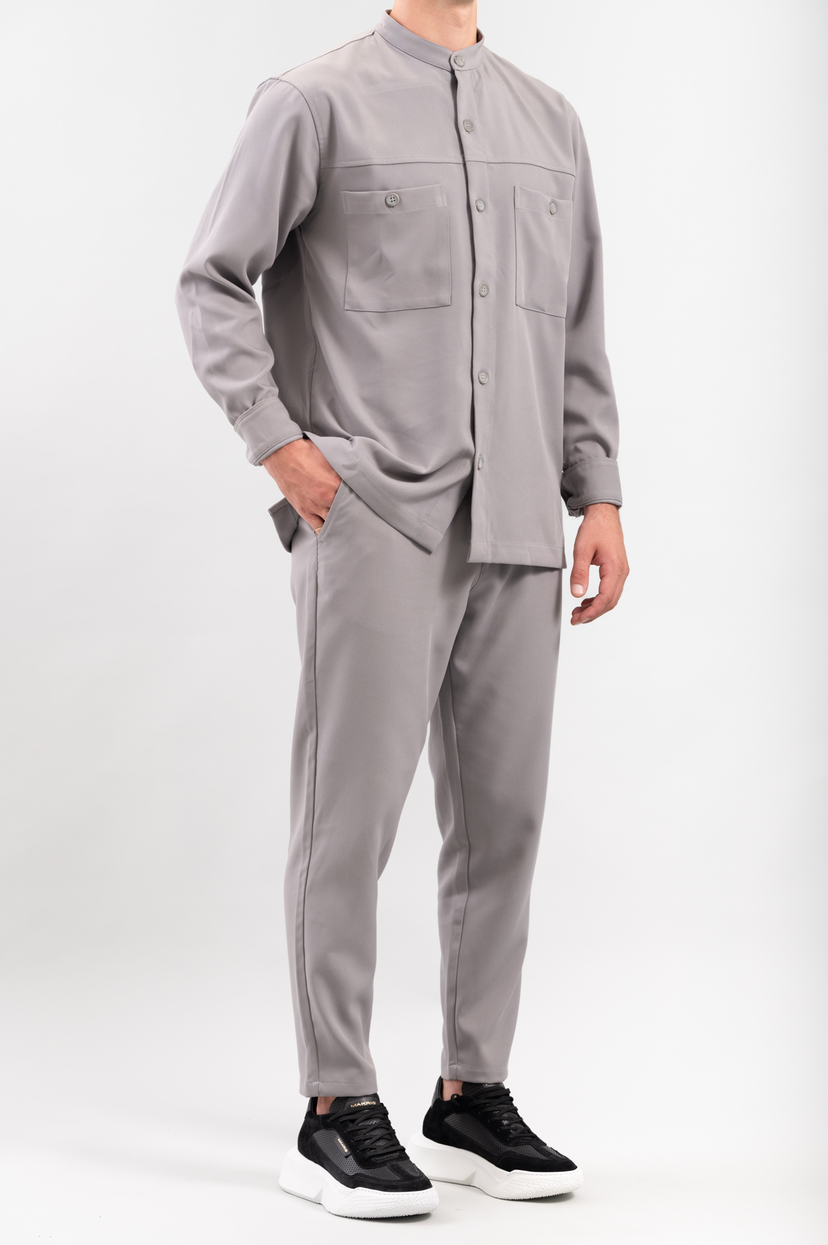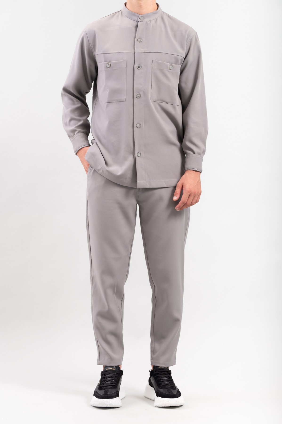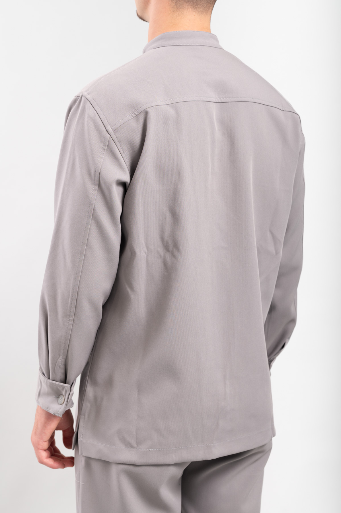-Πουκάμισο Overshirt, με εξωτερικές τσέπες τύπου safari, μάο γιακά και κλείσιμο με κουμπιά.