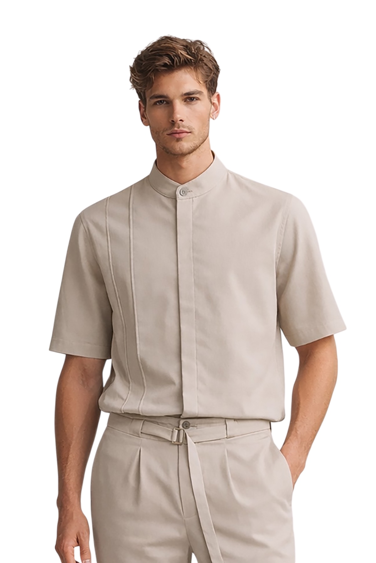 -Overshirt με τρουκάρ μανίκι και μάο γιακα